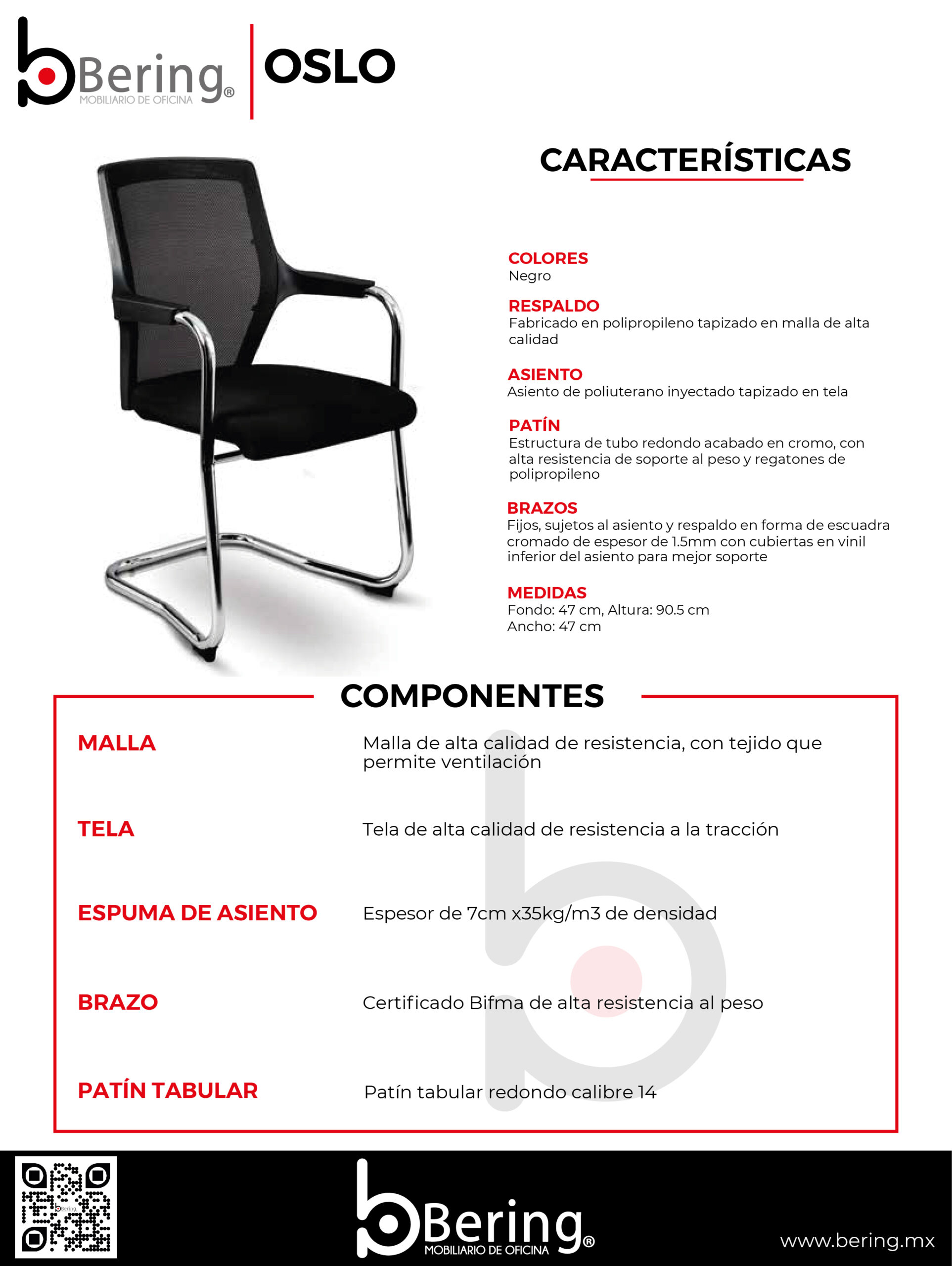 •Respaldo fabricado en polipropileno tapizado en malla.